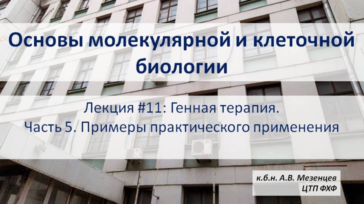 Основы молекулярной и кл биологии (2024) Л11 Генная терапия Ч5 Примеры практического использования.
