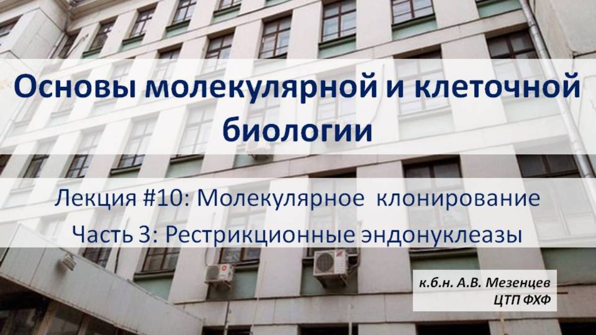 Основы мол и кл. биологии (2024) Л10 Молекулярное клонирование Ч3 Рестрикционные эндонуклеазы.