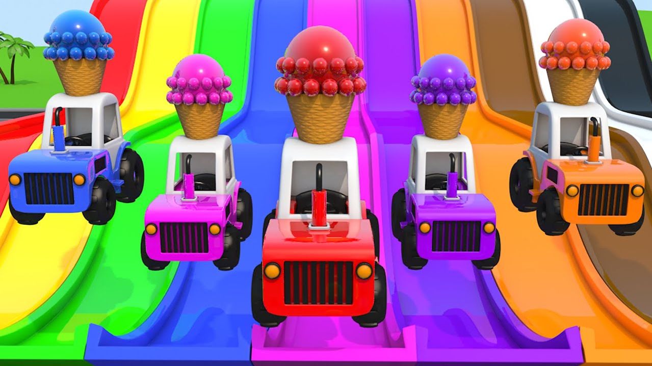 Обучающие видео для детей, цвета для детей, раскрашивание машинок из цветных шаров, 3D-трасса