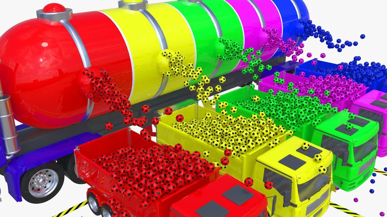 Изучаем цвета с помощью игрушечного самосвала и цветных шариков - мультики для детей и малышей