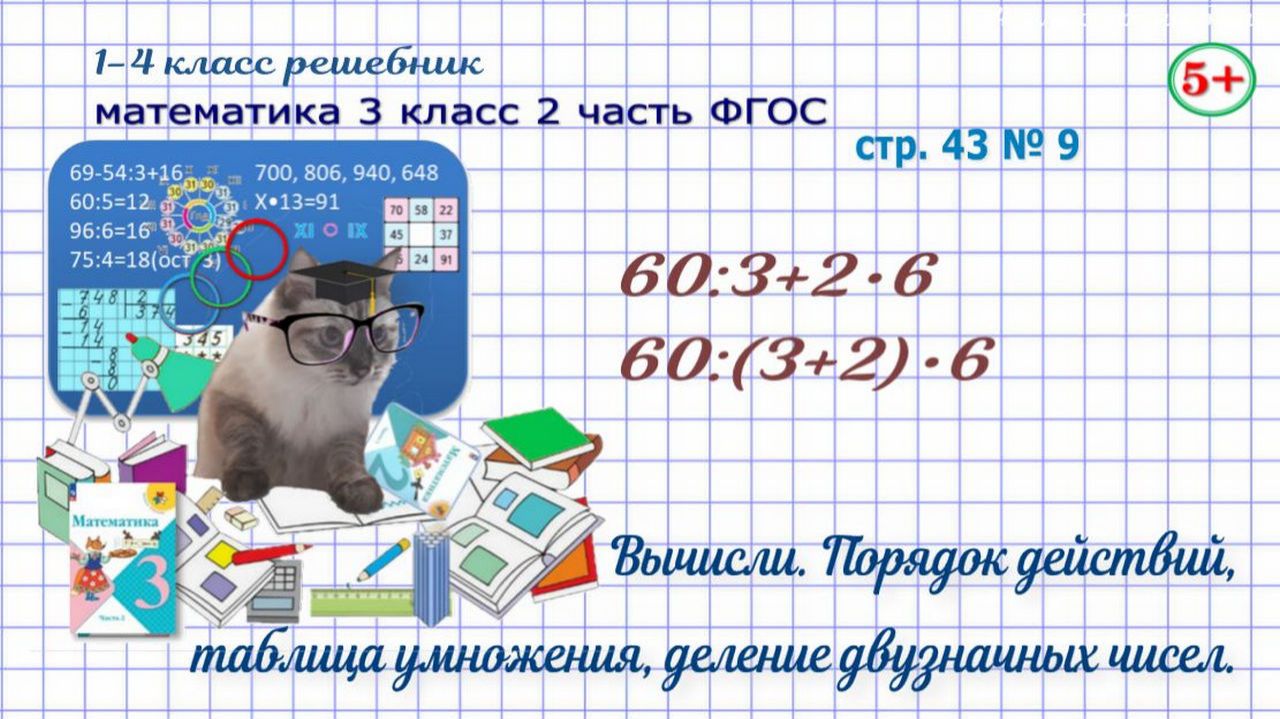 Стр. 43 № 9 математика 3 класс 2 часть вычисли: порядок действий, деление двузначных чисел ФГОС гдз
