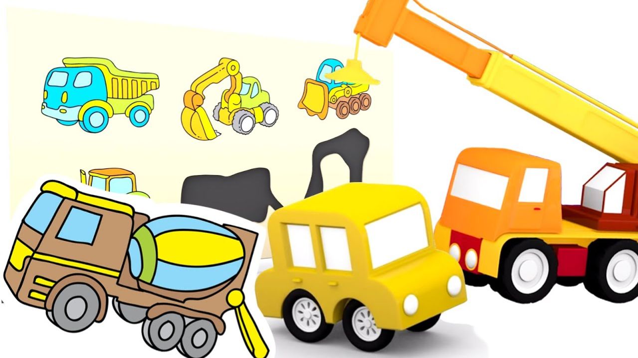 3D мультфильм для малышей 4 машинки. Пазлы рабочие машины