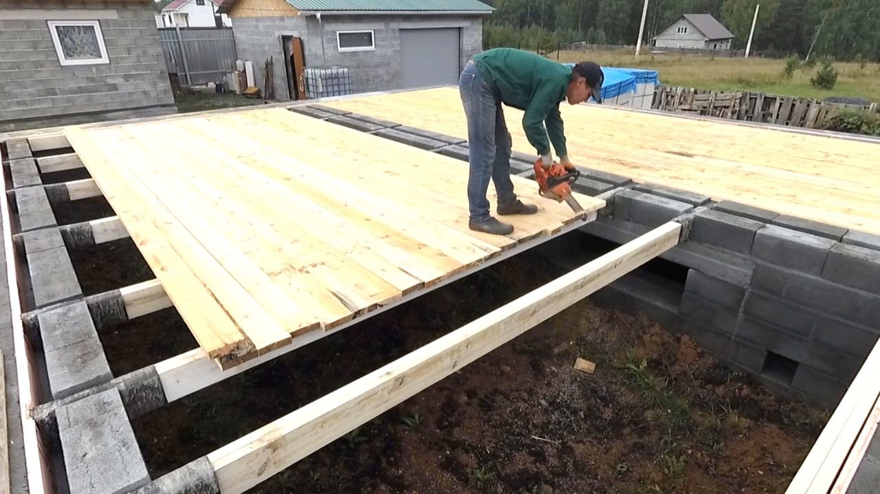 Перекрытие фундамента (черновой пол) и гидроизоляция под стены дома.