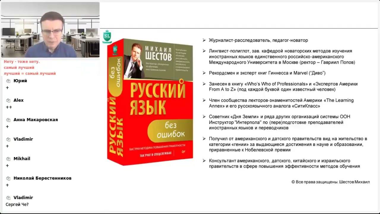 SupremeLearning English & Any Over Subject Fast Пошаговая методика изучения "с нуля" или совершенствования любого уровня владения английским, испанским, русским языком + освоения любого навыка, новой профессии, учебного предмета. Напоминаем, что все еще продолжается СуперАкция, позволяющая приобрести самые популярные курсы Михаила Шестова* со скидкой до 70 процентов: https://shestov.ru/supersale Смотрите запись праздничного мастер-класса Михаила Шестова*, посвященного выработке навыков, позволяющих сформировать или сохранить свою "интеллигентность" (то есть приятное впечатление о себе, как об образованном и вежливом человеке) при удаленном общении или работе, переезде на ПМЖ или временной релокации на русском, испанском, английском и др. языках (список языков см. здесь: https://shestov.ru/coaching). Он также поделился пошаговой методикой, позволяющей гарантированно освоить любые навыки, учебные предметы и новые профессии. Сегодня четвертый день праздничной СуперАкции: https://shestov.ru/supersale По предложению Мастера, сегодня и завтра, у вас точно есть возможность приобрести его уникальные курсы со скидкой до 70 (!) процентов (сотрудники Академии просили не делать больше 60). :) В январе 2024 года планируется проведение ТРЕХ живых блиц-курсов Михаила Шестова: - https://shestov.ru/spanish - КОРОЛЕВСКОГО и не очень испанского (в компании с лучшим испаноязычным учеником-педагогом Мигелем Арриягой Сорией) - https://shestov.ru/native - ДВОРЯНСКОГО и ТЕАТРАЛЬНО-ДИКТОРСКОГО русского - https://shestov.ru/online-course - НЕЙТРАЛЬНОГО (признаваемого во всем мире стандартным и приятным на слух, а не вражеским славянско-немецким) голливудского английского. Рекомендуем наши учебно-методические материалы читать только ВСЛУХ, каким бы странным это ни казалось, чтобы в голове осело не обычных 2 процента, а гораздо больше интересной и разнообразной информации. Многие подписчики просят нас пояснить разницу между различными видами курсов Михаила. Выполняем пожелание. Скорость и качество освоения "с нуля" или совершенствования любого уровня владения языком зависит от следующих факторов: а) в состоянии ли преподаватель или репетитор заметить и исправить все ошибки ученика, так как если от них быстро не избавиться, человек продолжит их совершать до Второго Пришествия. Печальный и неприятный факт: методик комплексной корректировки всех недочетов (кроме разработанной Михаилом Шестовым) в мире НЕТ. б) чередуются ли в ходе учебного процесса следующие методы обучения: "Детализация" - "Вал". Где под "Детализацией" понимается максимально подробное разъяснение ученику всех нюансов языка, а под "Валом" - чтение текстов вслух "потоковым методом" (то есть без пауз, в течение 45+ минут). Примечание: с помощью только "Вала" или только "Детализации" язык быстро и качественно освоить (автоматизировать навык) невозможно. в) поддерживается ли на занятии высокая исполнительская дисциплина. И тут, к сожалению, ничего приятного сказать не можем, потому что, как бы часто преподаватели не грубили бы ученику, не унижали его, не требовали от него запомнить к следующему уроку 10-100 слов или правил, от этого пользы, как от козла молока. Четкое выполнение рекомендаций преподавателя дает результаты только если упражнения действительно простые, эффективные (а на "рынке образовательных услуг таких днем с огнем не сыщешь) и рассчитаны не на отличника, а на самого неспособного ученик