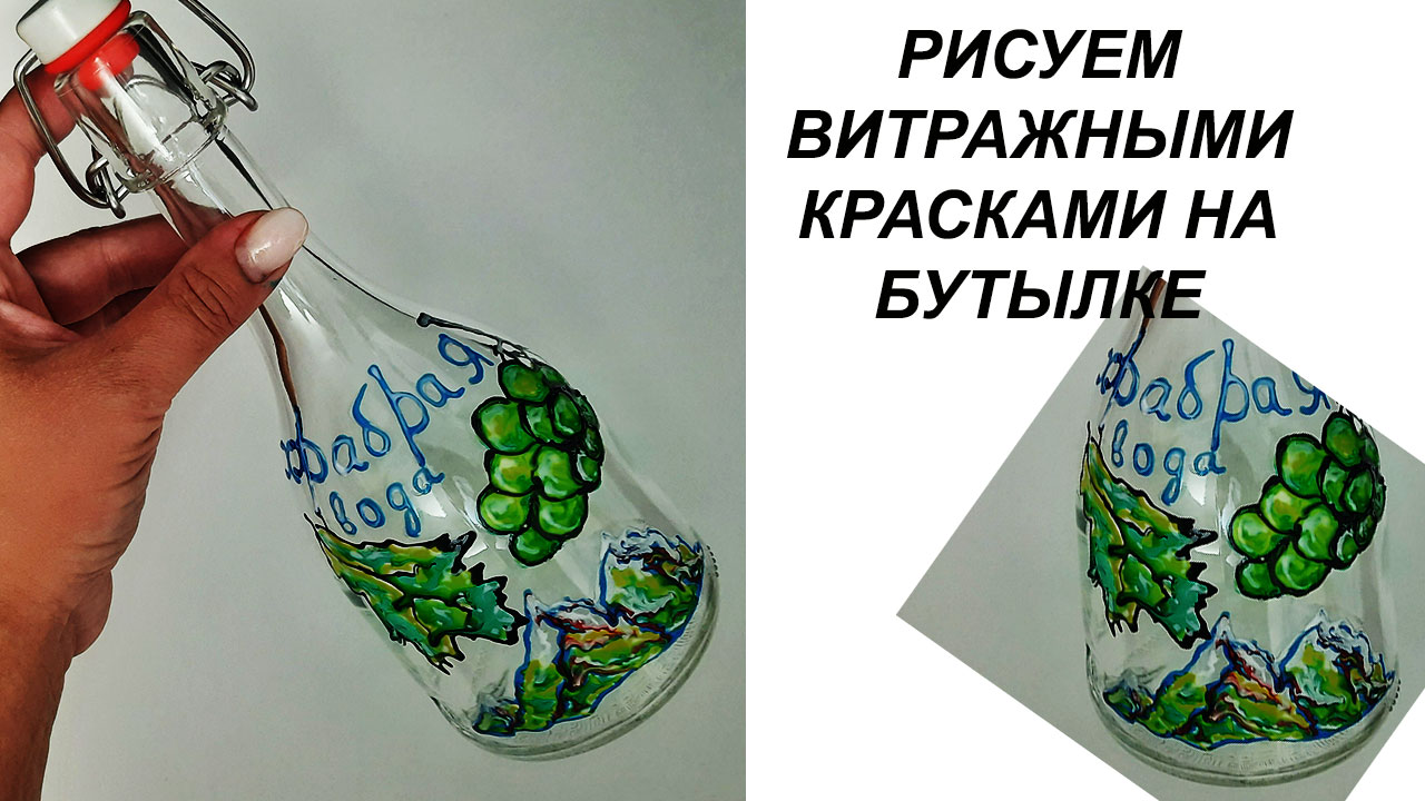 Рисуем витражными красками горы и виноград. Роспись бутылки