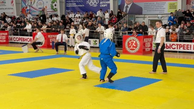21.02.2026 в Ульяновске прошли VI Всероссийские соревнования по кудо. Бой в категории до 180 ед. 12-13 лет. В синем Иван Наумов (Нижегородская обл.), в белом Матвей Куликов (Владимирская обл.).