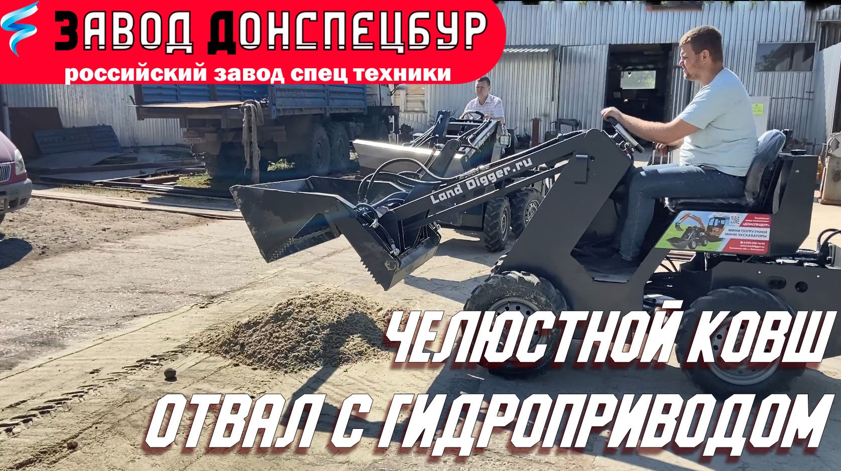 ☝ Показываем на что способен челюстной ковш и отвал с гидроприводом в работе. Челюстной ковш - 85 000 руб Отвал с гидроприводом - 85 000 руб ☝ Базовая модель - 790 000 руб ? Приглашаем всех желающих посетить наш завод и провести тест драйв на полигоне! ?Большой обзор на мини погрузчик Land Digger https://youtu.be/AagNjI1l18g ☝ Видео работы - мини погрузчика в паре с мини экскаватором https://youtu.be/awGIgI3QVfA ?Работа с навесными вилами https://youtu.be/Tnv5LZPm5Bg ? Если видео понравилось поставь Лайк покажи коллегам и друзьям ? =========================================================== ? Завод изготовитель Донспецбур г. Волгодонск Ростовская область ?- 8 800 500 10 95 звонок бесплатный ✅ WhatsApp: https://api.whatsapp.com/send?phone=+... или закажите обратный звонок через наш сайт ✅ http://www.landdigger.ru Наши новости в Телеграм ✅ https://t.me/Donspecbur #минипогрузчик #минипогрузчиквработе #заводспецтехники
