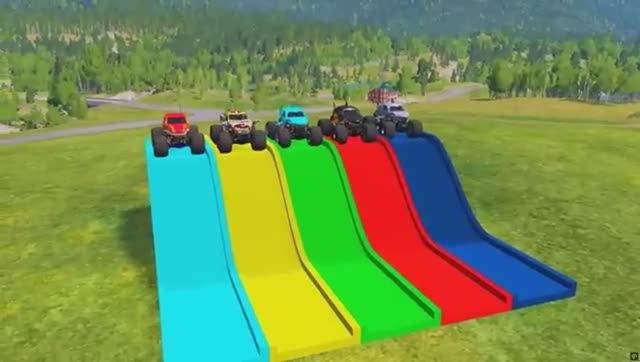 Мультики для детей и малышей . Мультики про машинки . Монстр траки преодолевают препятствия .