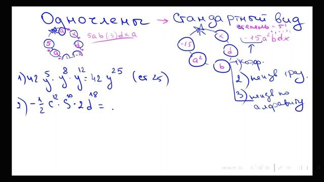 Вводим понятие одночленами, стандартного вида и его степени
