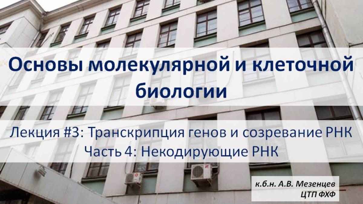 Основы молекулярной и клеточной биологии (2024) Лекция 3. Транскрипция. Ч. 4 Некодирующие РНК