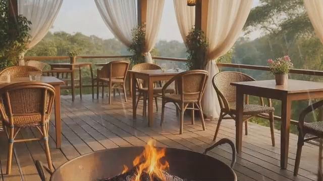 Релакс в тропическом кофе-бунгало с огнём и дождём.