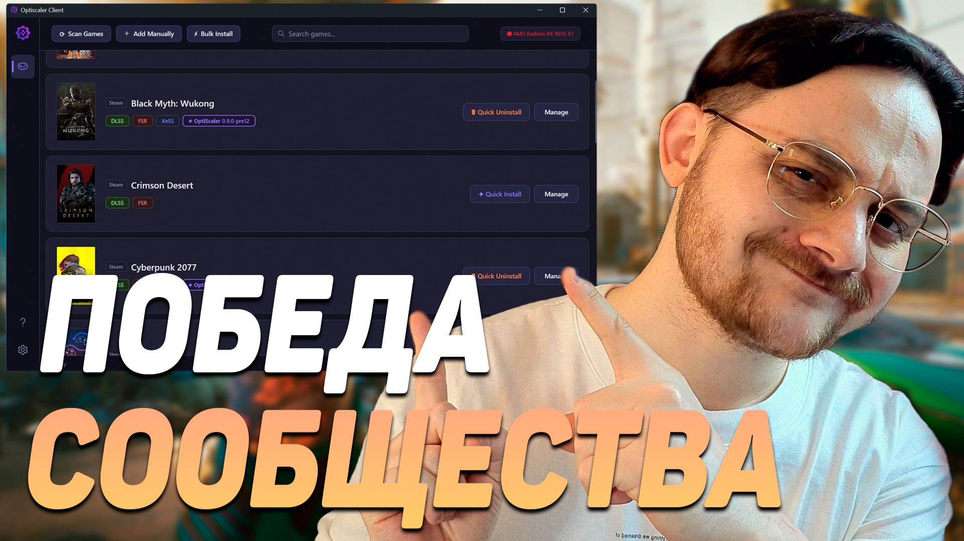 FSR 4 ВСЕМ и в ОДИН КЛИК — Optiscaler Client! (появился HUD, FSR 4 INT8 и ещё)