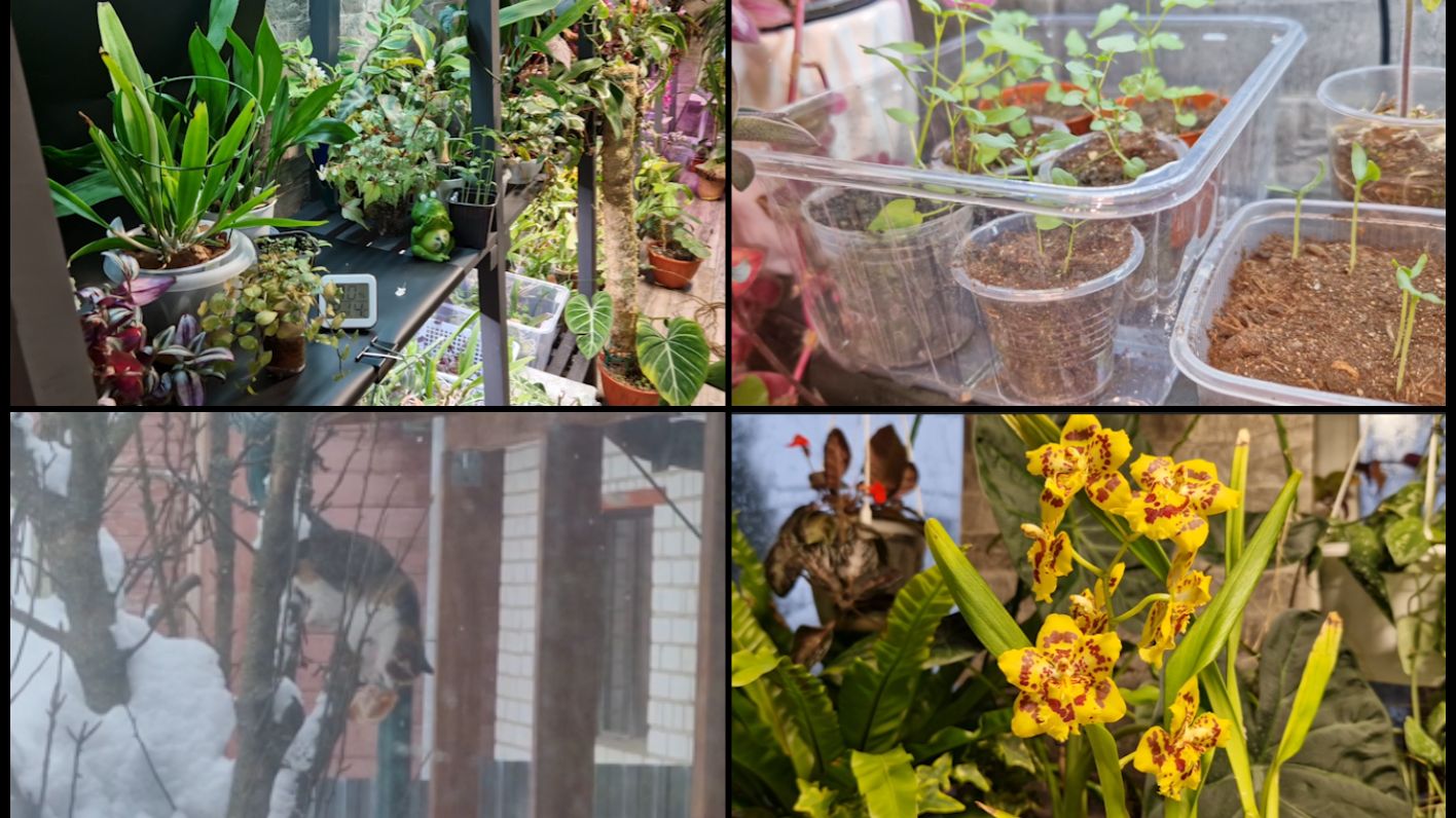 Осмотр домашних цветов и всходов в оранжерее. Есть же люди как люди! Коты прилетели