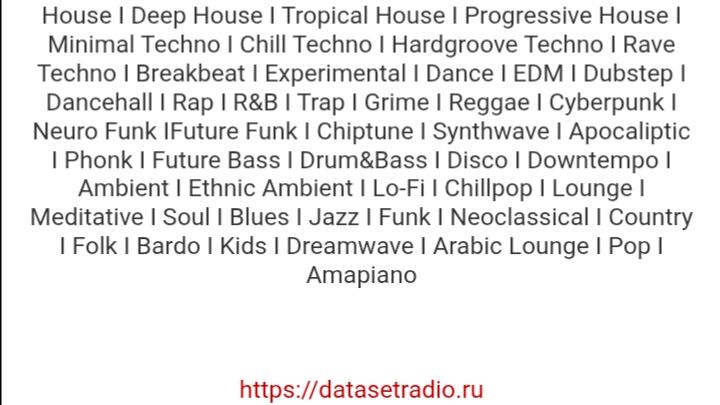 DATASET RADIO – Российское полноформатное AI радио, где вся музыка создана ИИ. 50+ потоков качественной нейромузыки. С каждым днём на станции их всё больше. Тысячи треков созданных нейросетями – на DATASET RADIO! Наш сайт: datasetradio.ru
