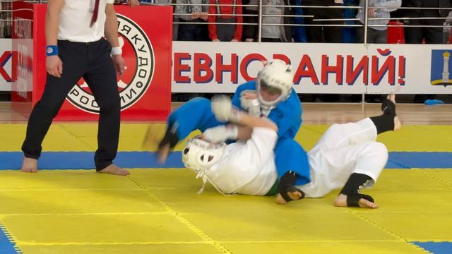 21.02.2026 в Ульяновске прошли VI Всероссийские соревнования по кудо. Бой в категории до 230 ед. 16-17 лет. В синем Елисей Чирков (Ярославская обл.), в белом Савелий Шишкин (Респ. Татарстан).