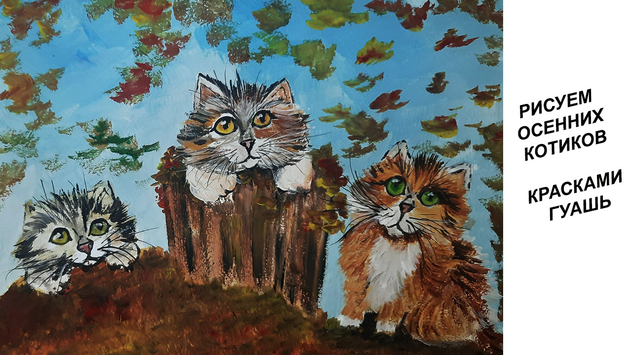 Как нарисовать осенних котиков. Нарисуем котов гуашью. Кошки красками.
