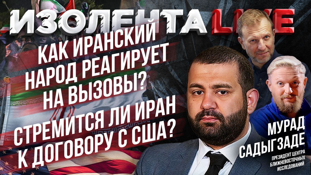В эфире программы "ИзолентаLive" президент Центра ближневосточных исследований Мурад Садыгзаде. Мурад Садыгзаде: https://t.me/vostochnykaraul Трофим Татаренков: https://t.me/NeBrigada Пётр Лидов: https://t.me/pvsgns Задонатить, участвовать в голосовании и задать вопрос можно тут: https://donate.stream/izolentalive. Нравятся наши выпуски? Подпишись на «Изолента+»: https://t.me/tribute/app?startapp=sr3 Изолента в Телегам https://t.me/izolentalive Изолента ВКонтакте https://vk.com/izolentalive Изолента в MAX: https://max.ru/izolentalive Кулинарный проект "Мужики на кухне": https://t.me/tribute/app?startapp=si76 Радио Sputnik: https://t.me/radio_sputnik «ИзоТОЛК» — это новый проект «ИзолентаLive» и «Изолента+»! Есть что сказать? Оставь заявку здесь: https://t.me/IzoTalkBot. Книга Трофима «Темник», как говорят злые языки, главная книга года. Купить её можно тут: https://litgid.com/catalog/sovremennaya_proza/temnik/