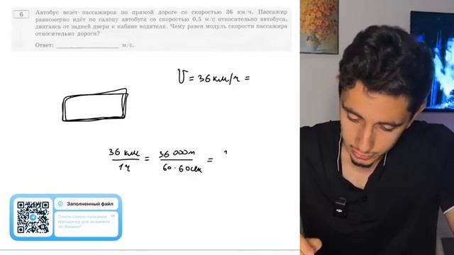 Автобус везёт пассажиров по прямой дороге со скоростью 36 кмч Пассажир равномерно идёт - 20226