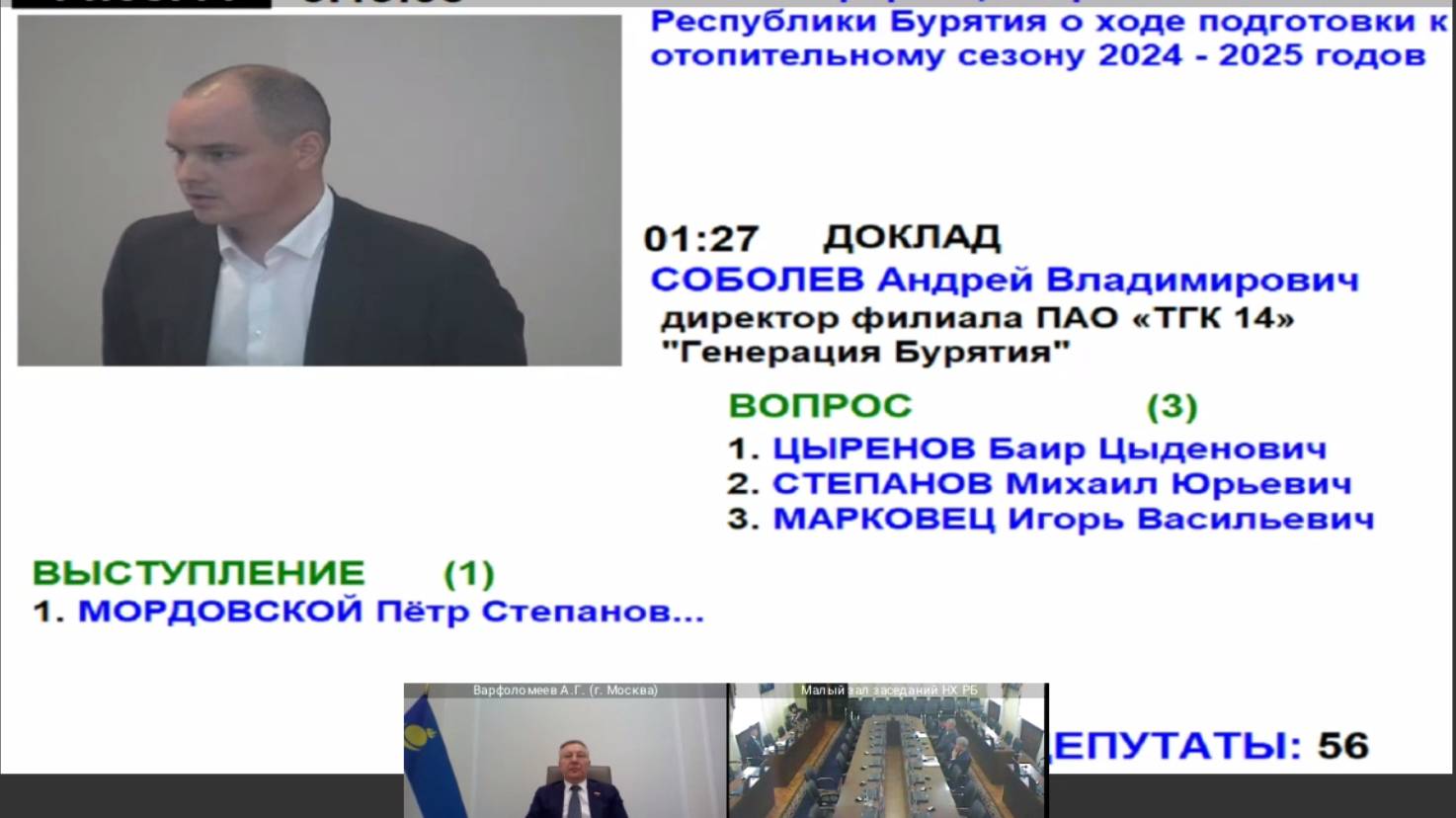 Часть 2, 26 сентября 2024 года, 14:15 «Правительственный час»: Об информации Правительства Республики Бурятия о ходе подготовки к отопительному сезону 2024 – 2025 годов