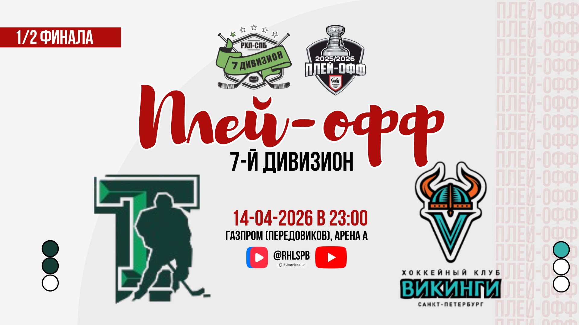🏒 ХК «Танк» - ХК «Vikings» 🏆 Он лайн трансляция 🏅Плей-офф, 1/2 финала, Матч №4 - «7-й дивизион» 🎯 Счет в серии 2:1 📍Газпром (Передовиков), Арена А 📅 14.04.2026 г. ⏰ 23:00 🎙 Стасеня Александр 🎥 Трансляция доступна на трёх платформах: • YouTube https://youtube.com/live/nXsDGQAU4Uw?feature=share • VK Video https://vkvideo.ru/video-130581940_456241455 • RUTUBE https://rutube.ru/video/a779b2348f098141cf457357ed2345e0/ 👉 РХЛ это: 💥Лучшая спортивная составляющая, конкурентный хоккей 💥Общероссийские турниры на регулярной основе как в Санкт-Петербурге, так и в других городах. 💥Прямые трансляции матчей с комментатором 💥Лучшие, эксклюзивные и индивидуальные медали и награды. 💥Лучшая вечеринка и церемония награждения 🤚До встречи на льду