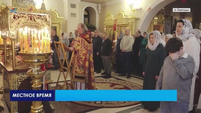 В последние часы Великой Субботы в Храме Рождества Христова посёлка Пангоды собрались десятки людей, чтобы всем вместе встретить главный христианский праздник – Пасху. Крестный ход и торжественное богослужение провёл настоятель прихода Иерей Евгений Шестаков. По традиции многие пришли семьями, с детьми. Взяли с собой яйца и куличи, чтобы угостить друзей и знакомых. В этот день людей объединяет чувство радости, светлого торжества и ожидания настоящего чуда. Позади Великий Пост, длившийся семь недель. Верующие держались его, подготавливая себя к Светлому Христову Воскресению. Для них Пасха самый главный праздник, в котором слились все символы и смыслы православной веры.
