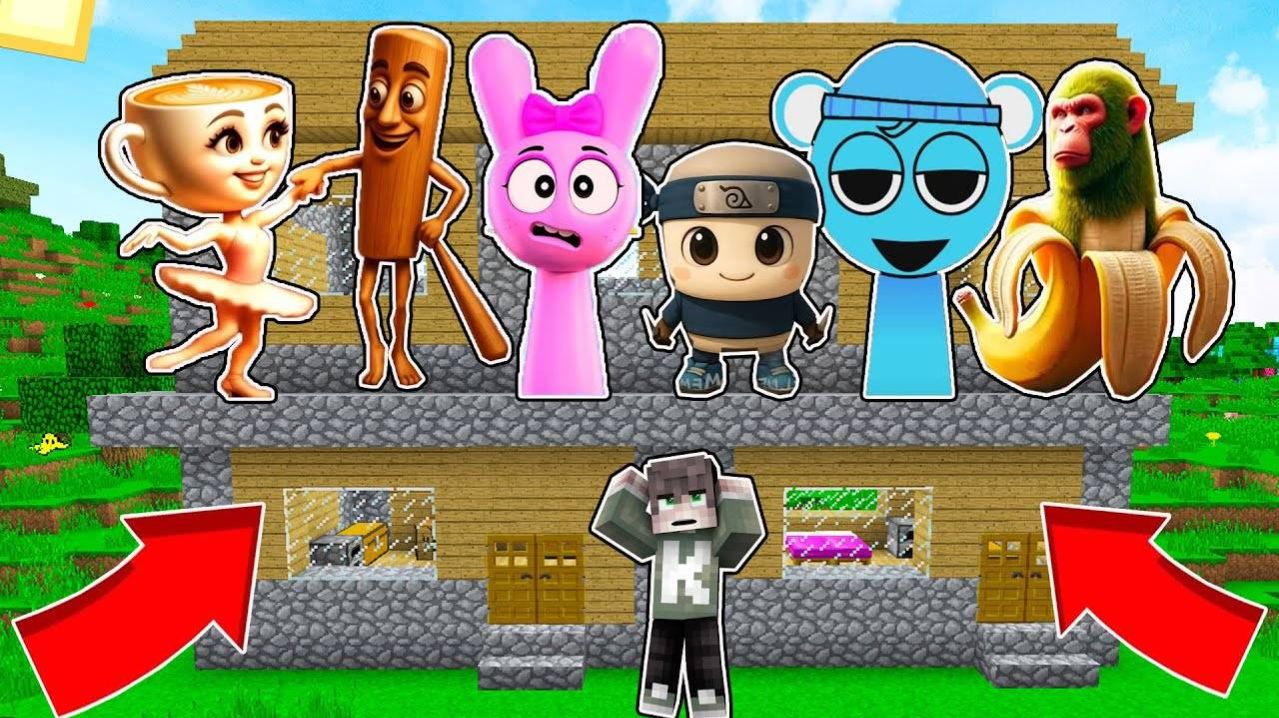 НАД МОИМ ДОМОМ ЖИВУТ ВСЕ СПРУНКИ И БАЛЕРИНА КАПУЧИНА В МАЙНКРАФТ