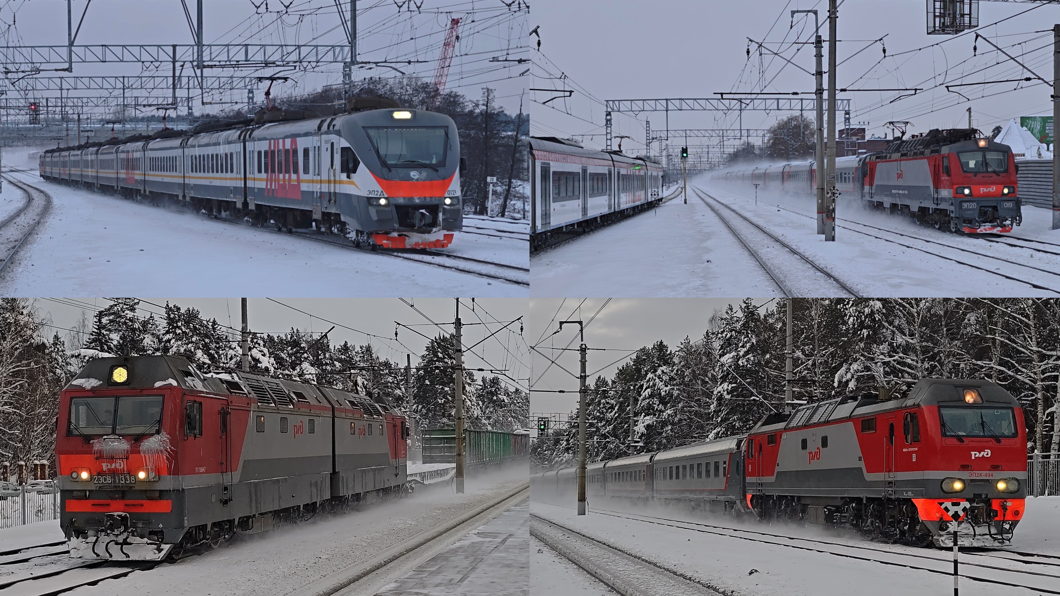 участок Люберцы–Раменское Рязанское направление Московская железная дорога 10 января 2026 года 15:08:22- перегон Люберцы–Быково 0:00-ЭП2Д-0129 поезд №6124 Москва–Голутвин и хвостик 102-го на ЭП20 | Красково 15:08:22 0:43-снеговой ЭП20-019 с поездом №70 Москва–Липецк и Иволга 4.0 ЭГЭ2Тв-022 | Малаховка 15:17:42 перегон Раменское–Быково 1:37-сборный покатил под охрипшим 2ЭС6-1338 | Есенинская 15:47:42 2:11-среди зимней сказки ЭП2К-494 с поездом №120 Москва–Саранск | Есенинская 15:57:09 2:48-сказочная природа и ЭП2К-454 с поездом №50 Москва–Уфа | Есенинская 16:03:49 3:35-снежная скорость! ЭП2К-325 с поездом №32 Москва–Орск | Кратово