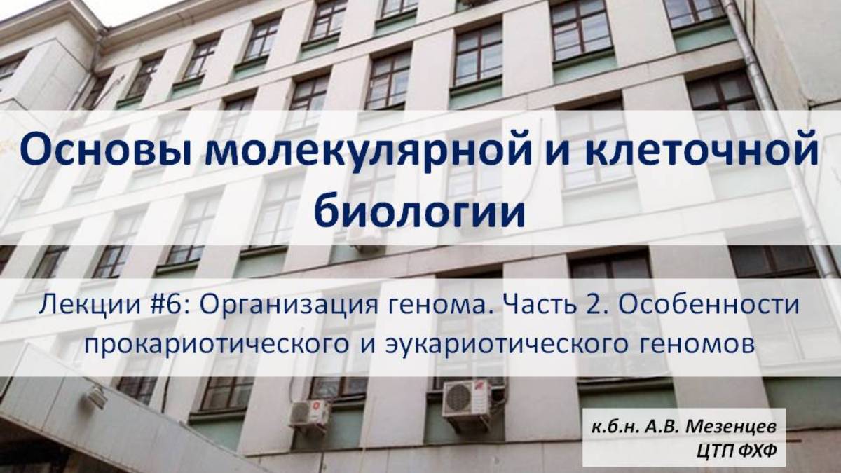 Основы мол. и кл. биологии (2024) Л6 Организация генома Ч2 Особенности про- и эукарического геномов