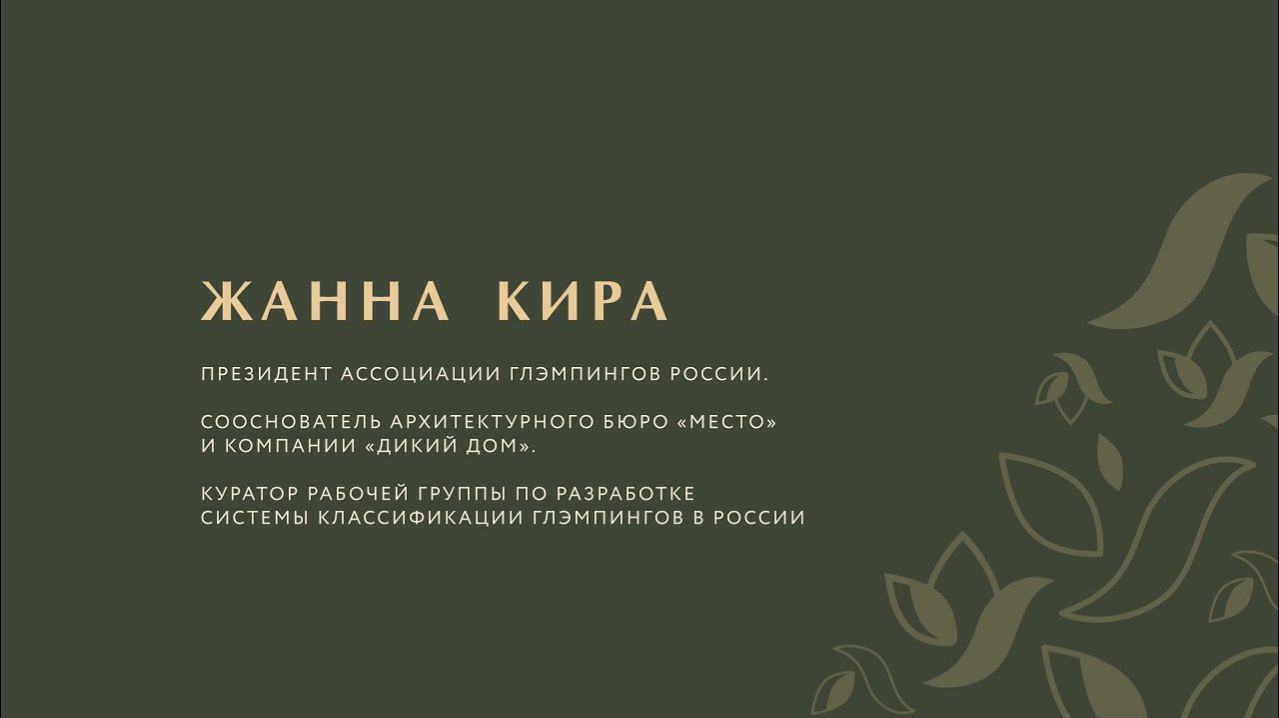 Выступление Жанны Киры, Президента Ассоциации глэмпингов России, сооснователя компании "Дикий Дом" и архитектурного бюро "Место", на дне открытия образовательной акселерационной программы "Глэмпинг-Бизнес" В видео может содержаться упоминание соцсетей Instаgram и Fаcebook, деятельность которых на территории Российской Федерации запрещена