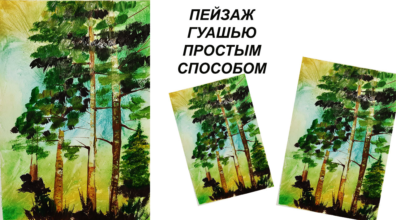 Как нарисовать сосновую рощу красками. Рисуем лес. Пейзаж гуашью.