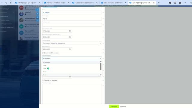 Заполнение вкладки суд демонстрация изменений в поле суд