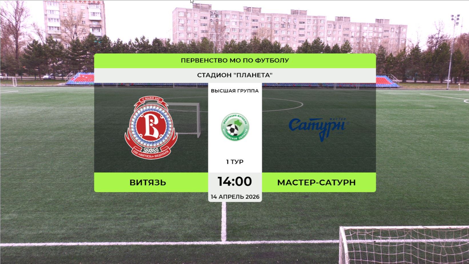 Витязь Подольск - Мастер-Сатурн Московская обл. /ПМОФ/2012/Высшая группа/1 тур/14.04.2026/14:00